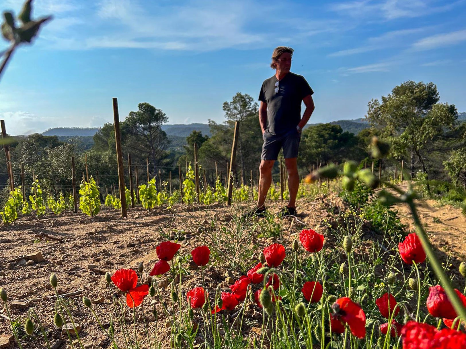 entre el bosque y la pequeña viña, bajar a la playa, hacer una