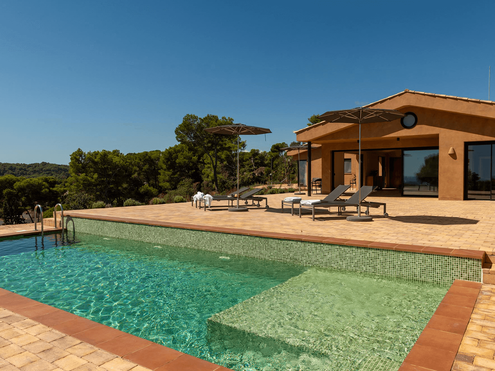 En la masía, puedes disfrutar del sol, nadar en la piscina, caminar